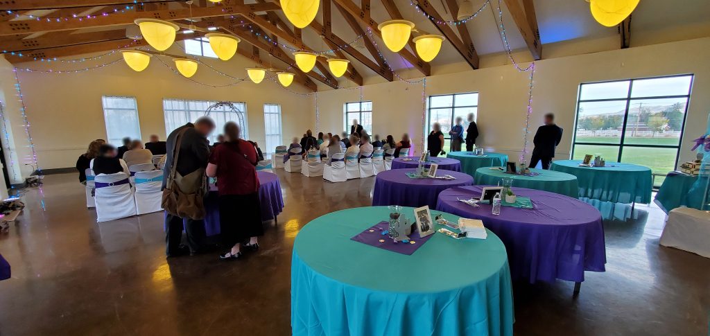 Custom pixel canopy and perimeter pixel lighting with twinkling wedding colors. Standalone control via WLED.